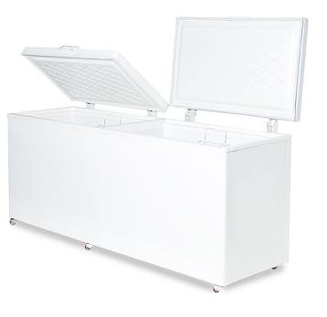 Лари большого объема способны заменить в торговых точках дорогостоящие морозильные установки. Двойная крышка облегчает доступ к продукции, сокращая при этом потерю холода из ларя, что ведет также к экономии ресурса компрессора и электроэнергии в целом. В комплекте 6 корзин, колеса